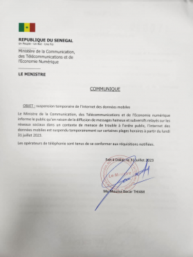 Le ministère de la Communication a récemment pris une décision radicale en annonçant la suspension temporaire, et ce jusqu’à nouvel ordre, de l’accès à l’Internet des données mobiles sur l’ensemble du territoire.