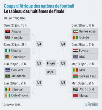 Le calendrier complet des huitièmes de finale de la CAN 2024 a été dévoilé, avec des rencontres passionnants. Les résultats du dernier jour de la phase de groupes de la CAN 2024, qui s’est tenue le 24 janvier, ont finalement fixé les duels pour le premier tour des éliminations directes.