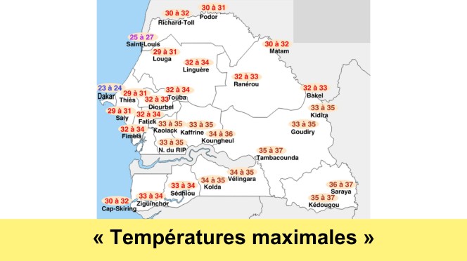 Les températures maximales ressenties aux heures les plus chaudes de l’après-midi sont précisées sur la carte météorologique.